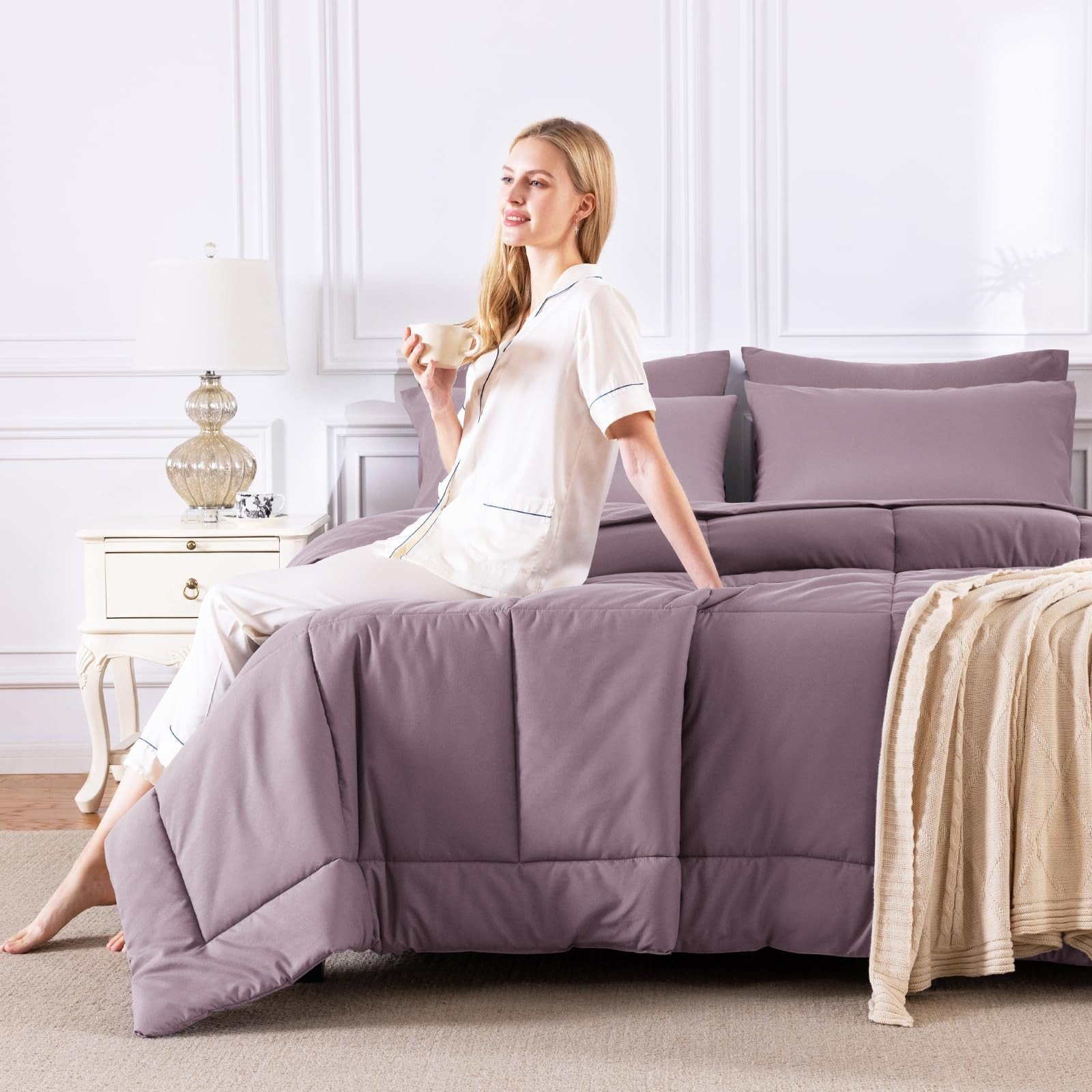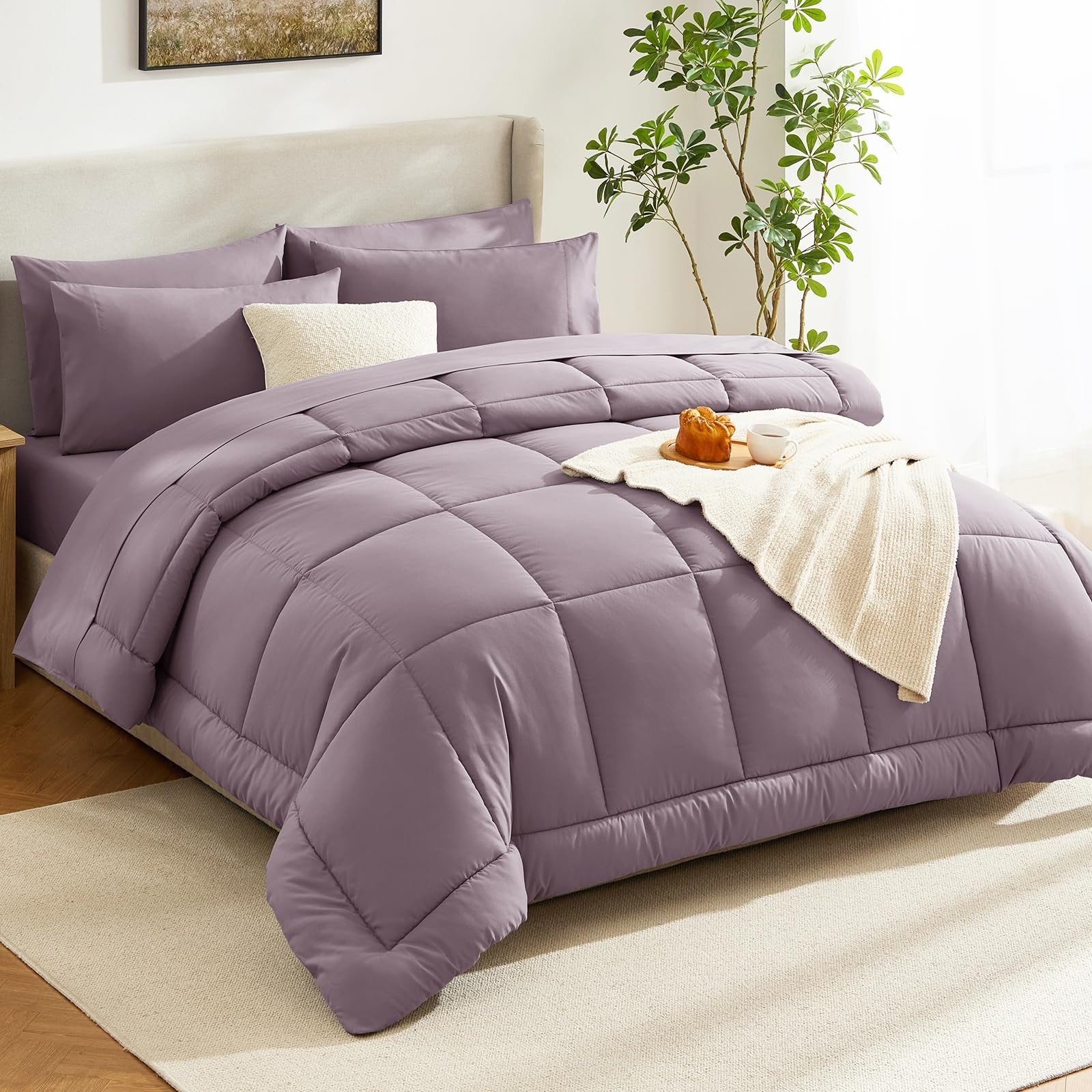 7 Pieces Bed in a Bag, Comforter Queen Size, All Season Bedding Sets-4