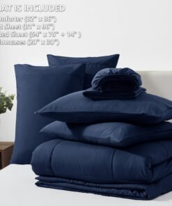 - HOW WE SIZE UP: Queen Size bed in a bag includes 1 Comforter (88″x88″), 1 Flat Sheet (90″x102″) , 1 Fitted Sheet (60″x80″+14″) and 4 Pillowcases (20″x30″); Our bed in a bag is packaged in a vacuum bag, so you can dry it in low heat or tap the comforter gently while baking it in the sun to fluffy again