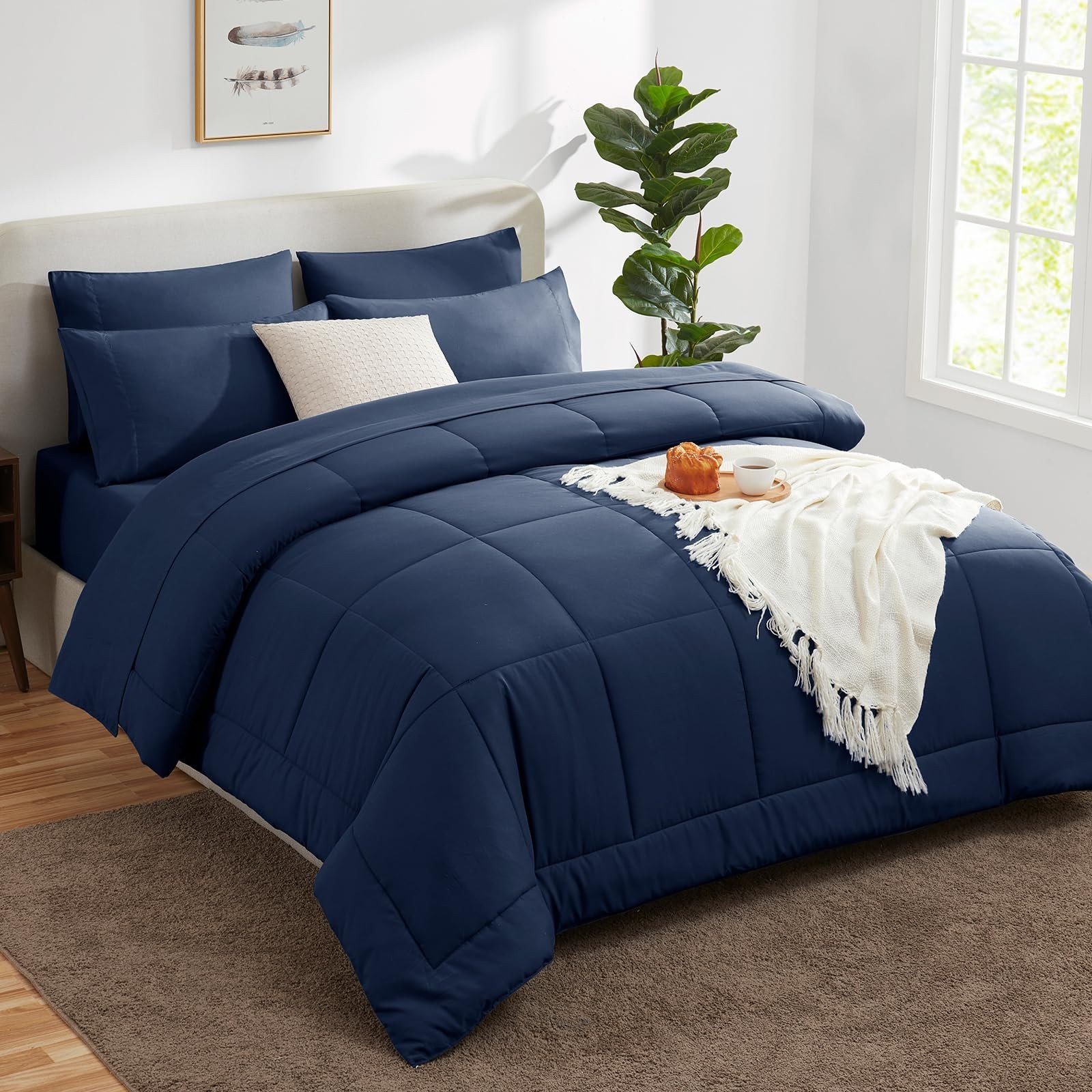 7 Pieces Bed in a Bag,Comforter Queen Size, All Season Bedding Sets-6