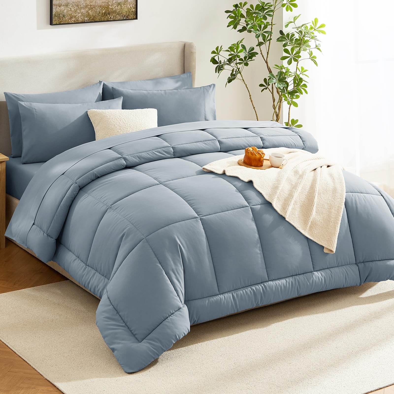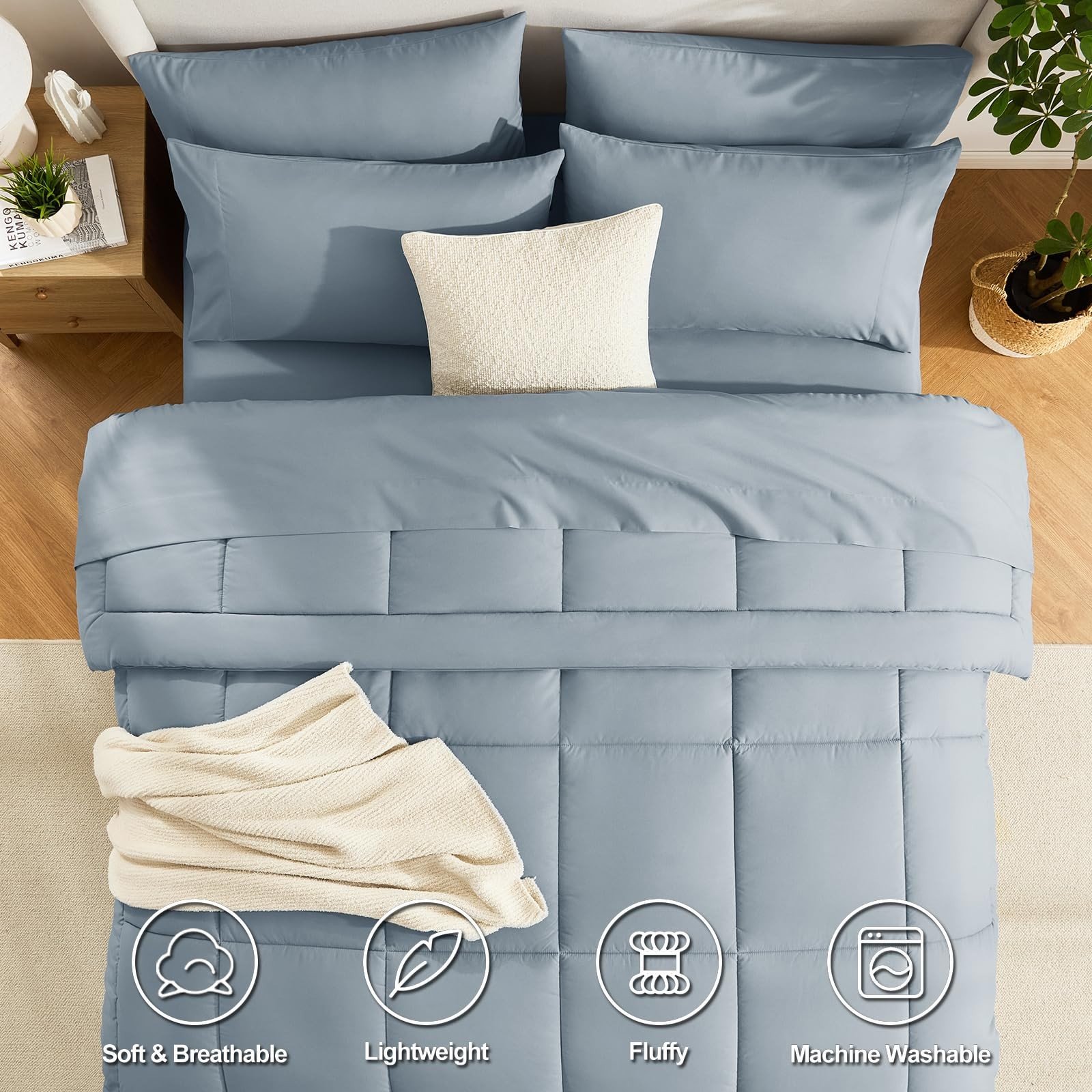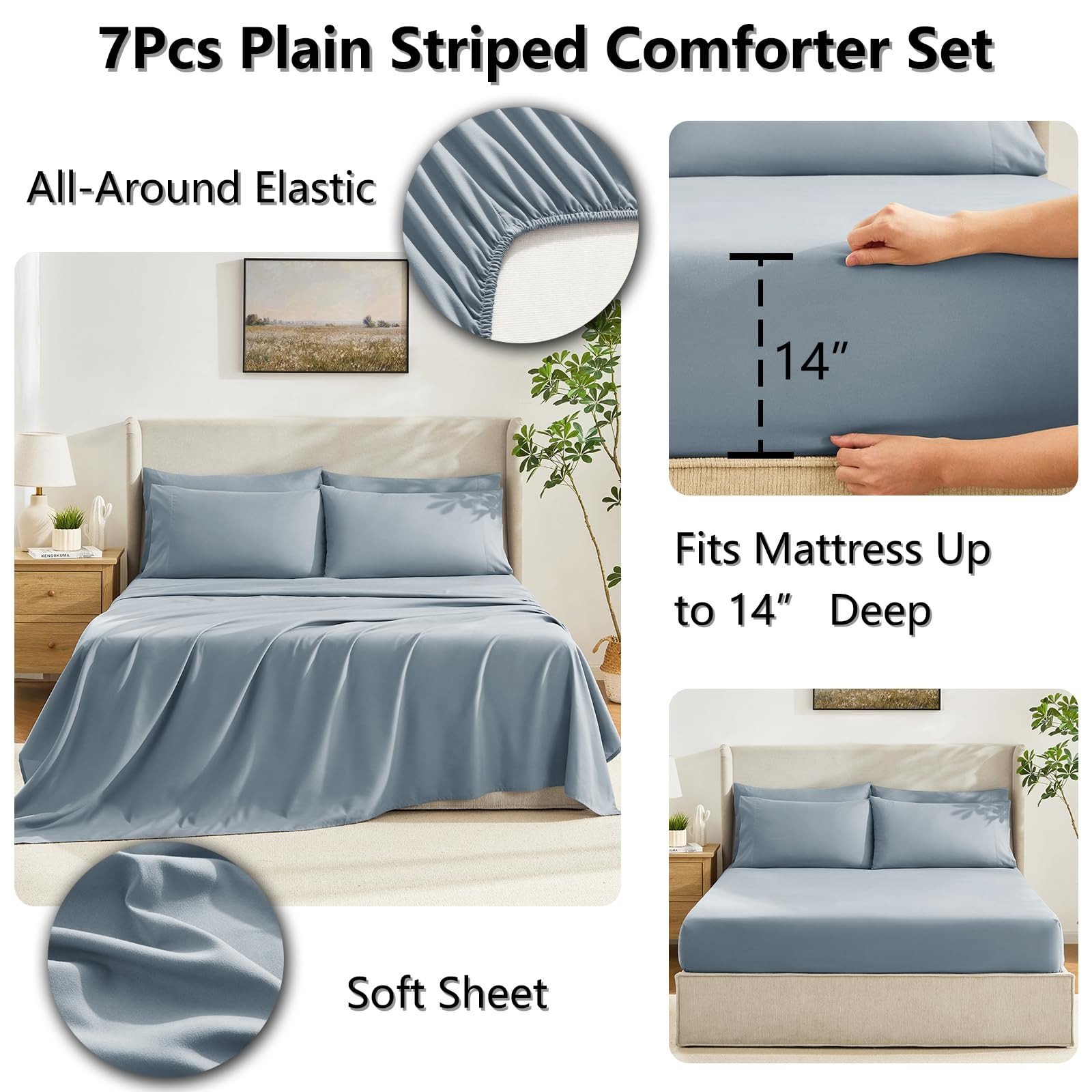 7 Pieces Bed in a Bag, Comforter Queen Size, All Season Bedding Sets-7