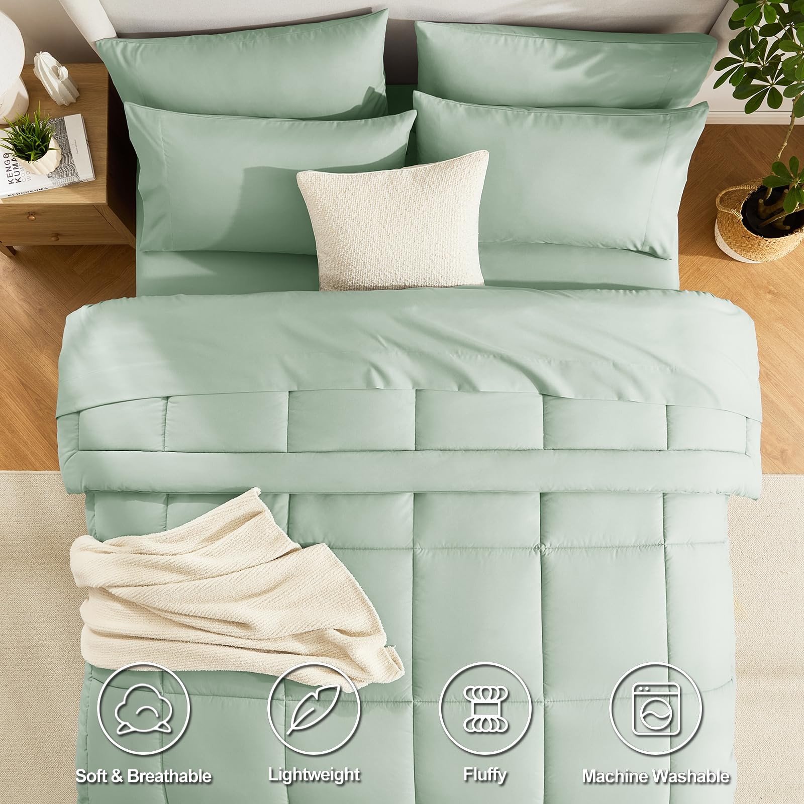 7 Pieces Bed in a Bag, Comforter Queen Size, All Season Bedding Sets-8