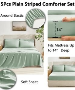 - ELABORATE DESIGN: This bedding set includes a fitted sheet with a pocket for mattresses up to 14″ deep, envelope closure pillowcases to keep your pillows secure, and the comforter features durable box stitching which offers sophisticated look alongside simplicity and will also stable inside filling.