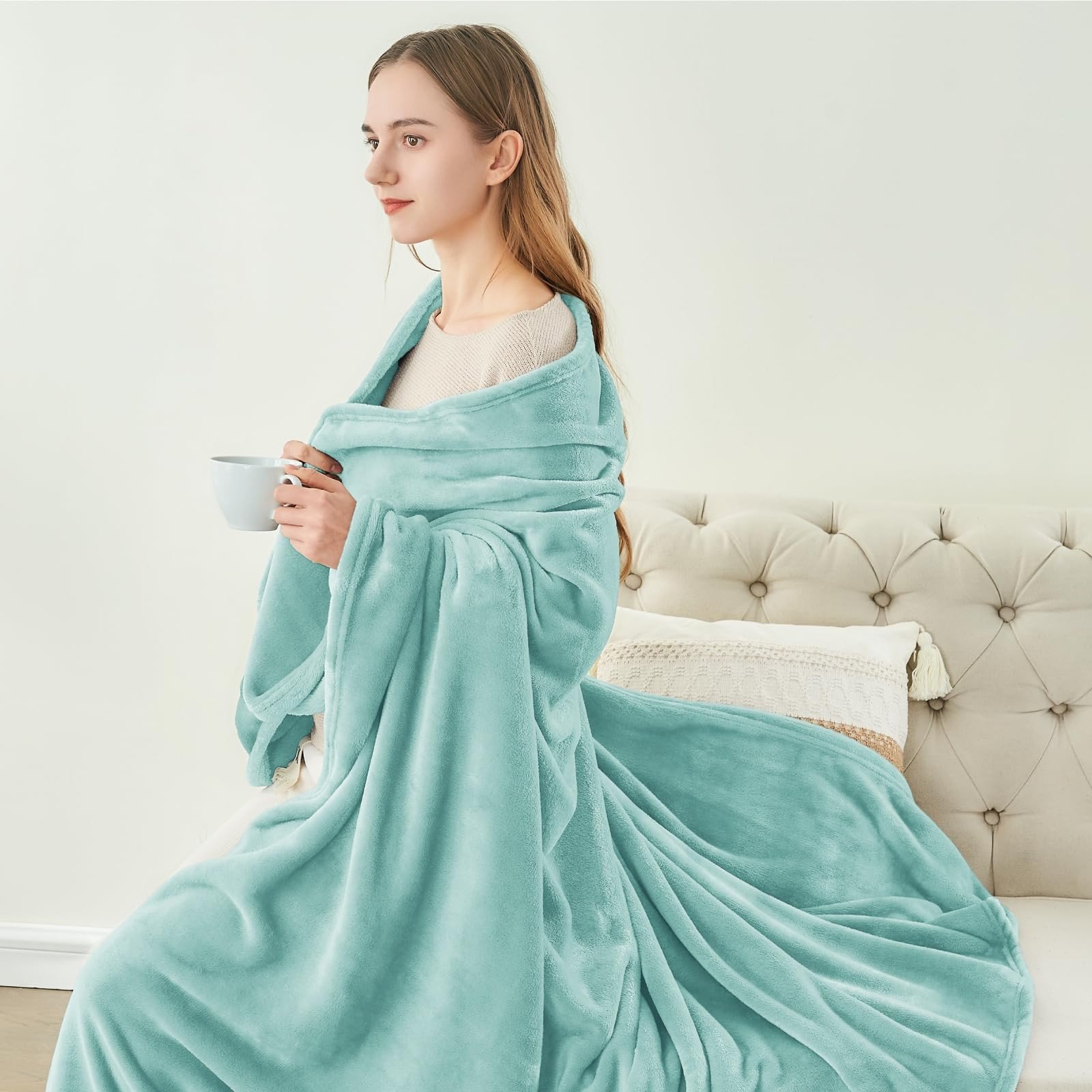 - DOUBLE-SIDE FLUFFY FLEECE BLANKET: The flannel fleece fabric we choose is originally made from 100% polyester and brushed to create super softness on both sides, the throw is designed to be solid but elegant.