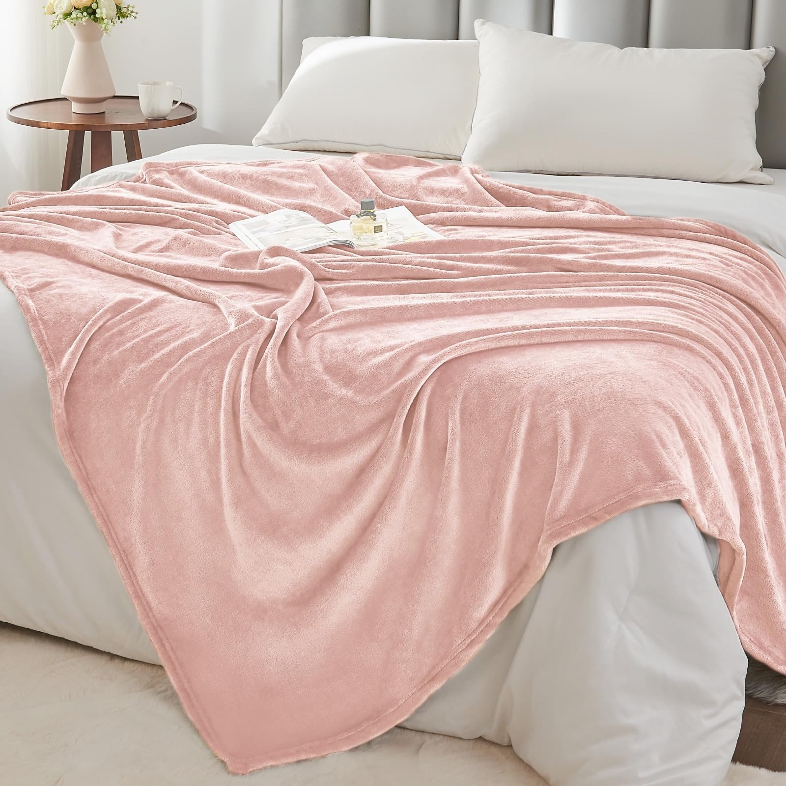 - DOUBLE-SIDE FLUFFY FLEECE BLANKET: The flannel fleece fabric we choose is originally made from 100% polyester and brushed to create super softness on both sides, the throw is designed to be solid but elegant.