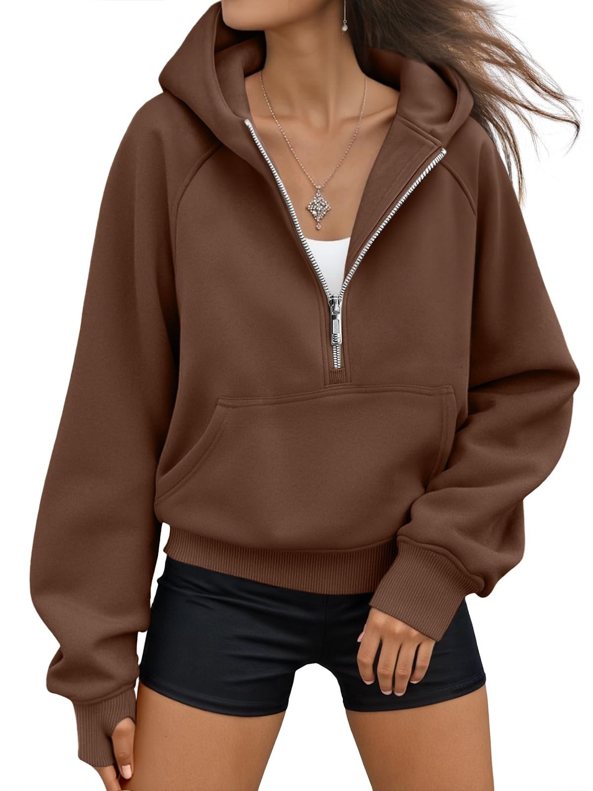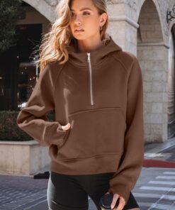 - Design: Athletic workout half zip hoodies,women pullover sweatshirts,drop shoulder collar, long sleeve, half zip hooded collar, solid color, cropped length, fleece lined, relaxed fit, crop tops, fall and winter outfits for women and teen girls, fashion and casual style.